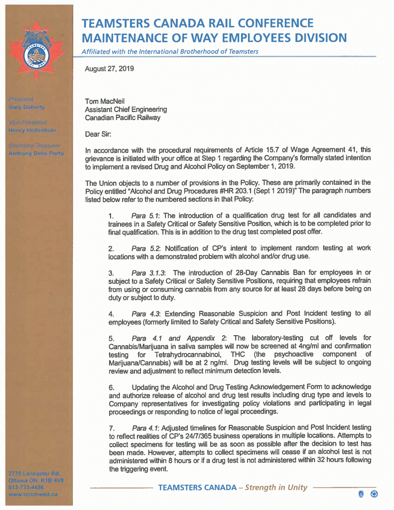 Uncategorized Grievance concerning Drug and Alcohol Policy By tcrc_mwed - September 4, 2019 0 460 FacebookTwitterPinterestWhatsApp