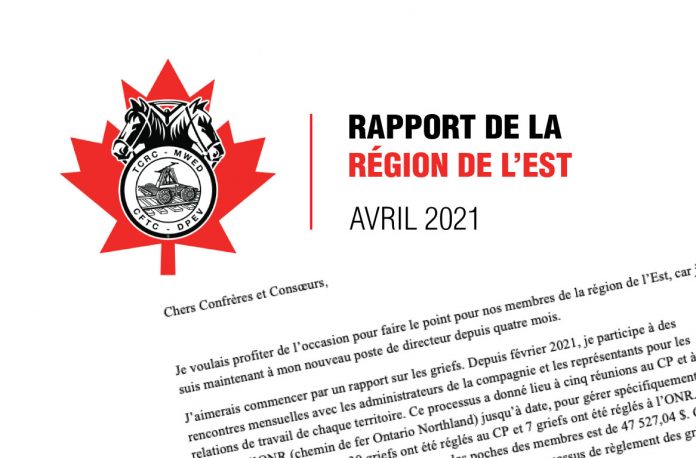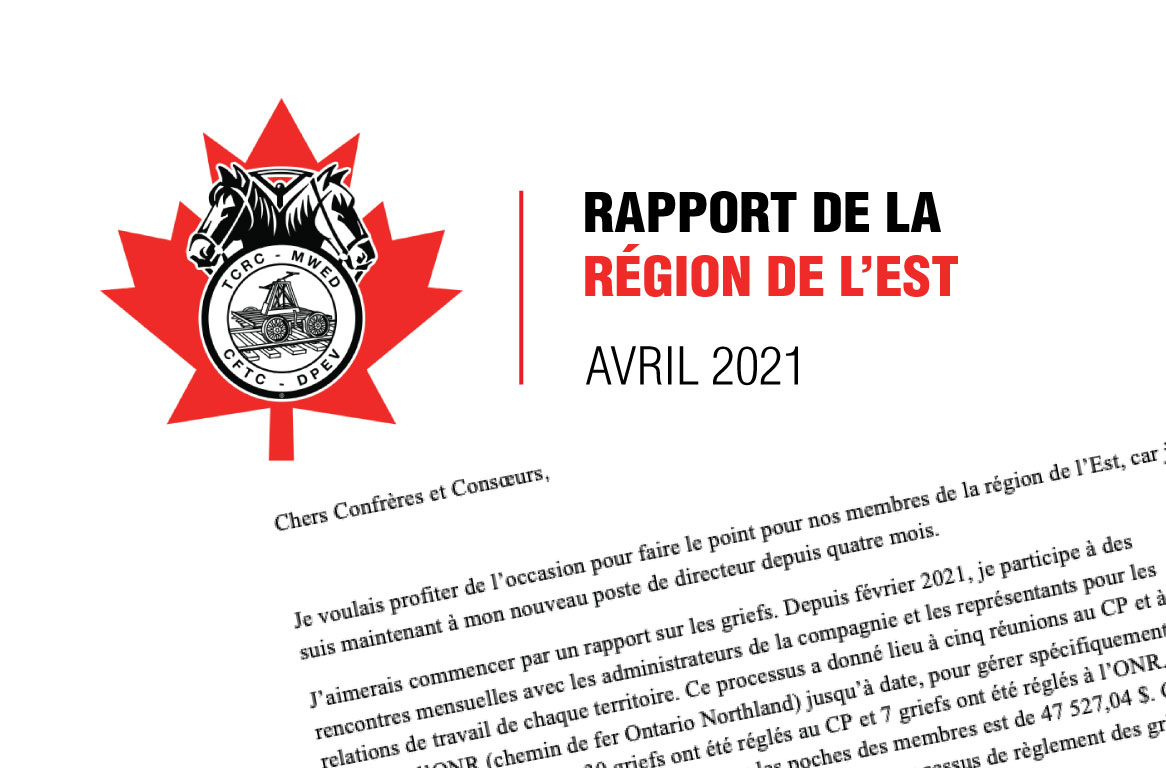 J’aimerais commencer par un rapport sur les griefs. Depuis février 2021, je participe à des rencontres mensuelles avec les administrateurs de la compagnie et les représentants pour les relations de travail de chaque territoire. Ce processus a donné lieu à cinq réunions au CP et à une réunion à l’ONR (chemin de fer Ontario Northland) jusqu’à date, pour gérer spécifiquement les griefs. Jusqu’à maintenant, 30 griefs ont été réglés au CP et 7 griefs ont été réglés à l’ONR. À ce jour, la rémunération totale qui retourne dans les poches des membres est de 47 527,04 $. Cela n’inclut pas les questions qui sont réglées avant le début du processus de règlement des griefs ou les questions réglées à l’étape 1 du processus de règlement des griefs.